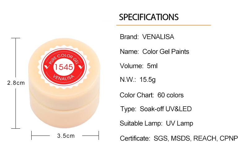 Гель-лак Venalisa 5 мл 60 цветов с УФ-подсветкой