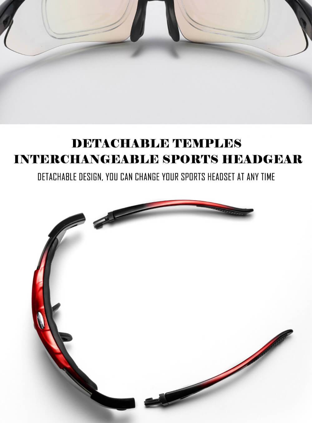 1. Высокая прочность Ударопрочный ПК объектив: Легкие линзы более гибкие и более ударопрочные, чем обычные линзы 2. Поляризованные линзы/Безопасная езда: Эффективно выдерживает отраженный светильник, Улучшает контрастность и делает зрение четким и комфортным 3. Осветляющие очки ночного видения: Безопаснее в ночное время 4. Изогнутая ветро-направляющая линза уменьшает сопротивление ветра: Физическая воздушная направляющая, снижающая сопротивление ветру, удобная при ношении и легкая езда 5. Спортивные головные уборы: Зеркальные ножки можно заменить на спортивные головные уборы Не легко упасть при езде/беге 6. Встроенный батончик для пота: Эффективно предотвращает попадание пота в глаза во время езды 7. Регулируемые носовые упоры: Регулируйте, как вам нравится, удобно носить 8. Встроенная Рамка для близорукости: Съемные дужки и сменные спортивные головные уборы Съемный дизайн, вы можете изменить свою спортивную гарнитуру в любое время