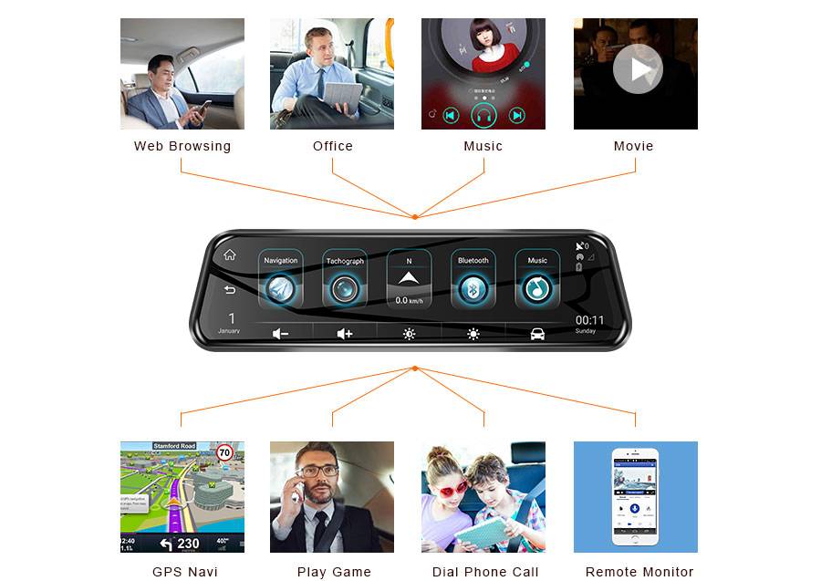 Elebest K38 10 дюймов Автомобильный видеорегистратор с сенсорным экраном зеркало заднего вида видеорегистратор Full HD Автомобильная камера 1080P двойная камера потоковое зеркало заднего вида DVR