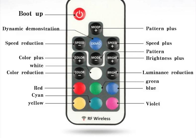 transparent, red, dark blue, light blue, purple, green ,yellow and white