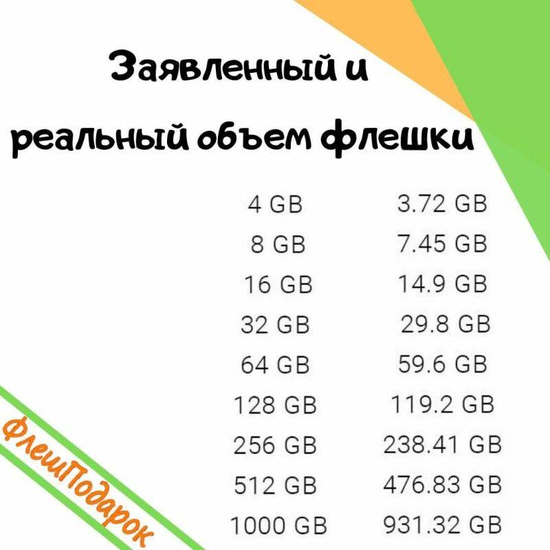 ☝️Поэтому при покупке флеш-накопителя будьте готовы к тому, что фактический и заявленный объем памяти будет разниться.