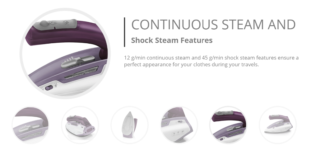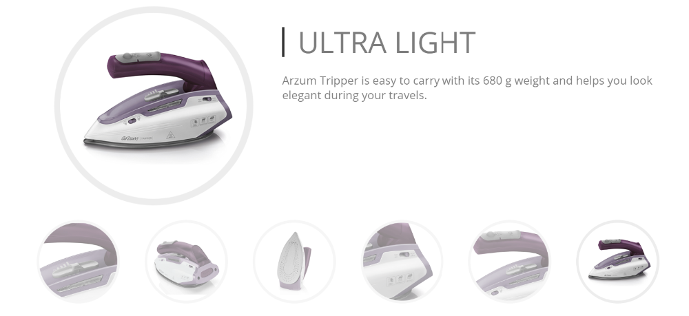 Arzum AR 690 Tripper 1150 W Паровая дорожная железно-фиолетовая-ваш компаньон для путешествий. Железо, которое вы можете носить с собой в домашних и международных путешествиях, является чрезвычайно светильник и полезно. Он борется с морщинами с быстрым выходом пара и помогает вам быть готовым к новым планам в любое время. Вы можете сделать дорожный Утюг, который вы можете носить в автомобиле и багаже, как секрет вашего идеального вида.Вы можете выглядеть идеально в любое времяВесит всего 680 грамм. Он занимает мало места в чемодане. Ручка устройства складная.Имеет керамическое основание. Подошва не прилипает и позволяет легко гладить с помощью скользкой функции.Он имеет непрерывные и ударные варианты пара.Благодаря выбору регулируемой температуры, его можно использовать в различных типах ткани.Вертикальная функция пара доступна.