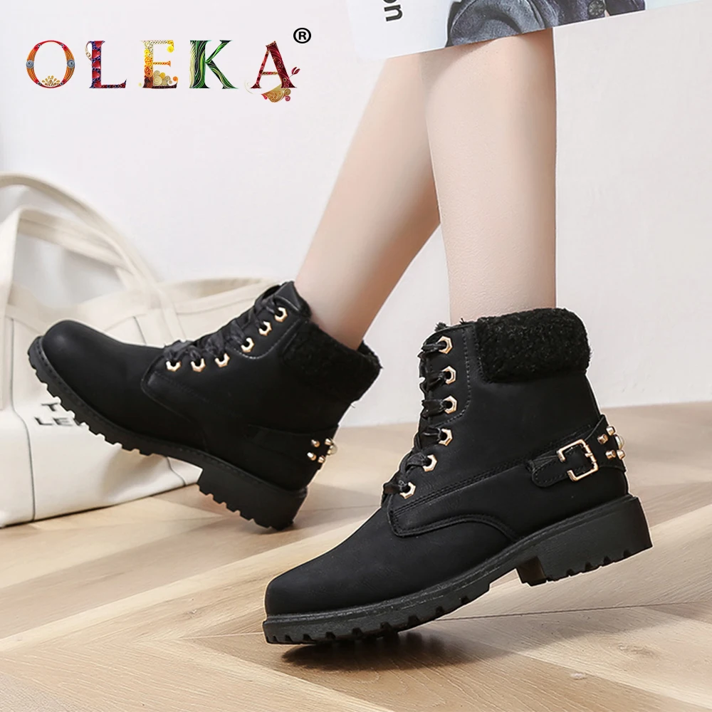 OLEAK/зимние женские ботильоны на платформе с металлическим украшением; Женские ботинки с круглым носком; Модные стильные зимние ботинки; Новая обувь; 2020