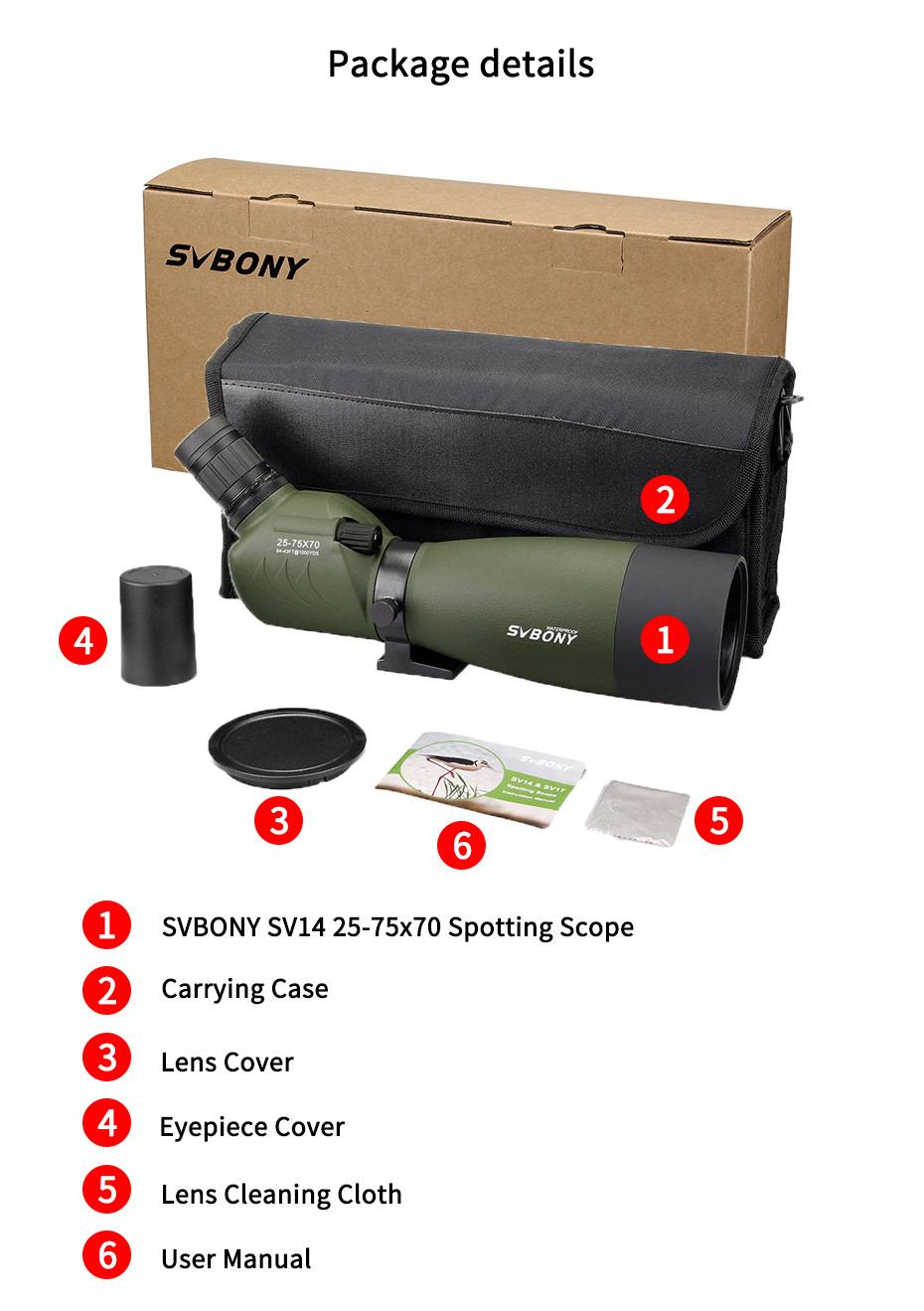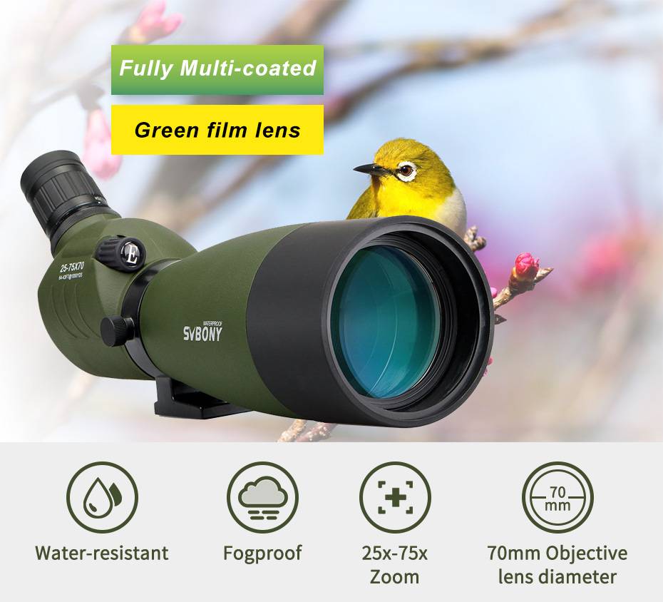 SVBONY 25-75x70 объединяет в себе современные оптические технологии, высокое качество изображения, широкий диапазон увеличений в 25 -75 крат, удобный наклонный окуляр и сбалансированные пропорции корпуса. Предназначен для наблюдения за объектами природы, городскими пейзажами, а также для наблюдения мишеней при стрельбе из оружия в тире.