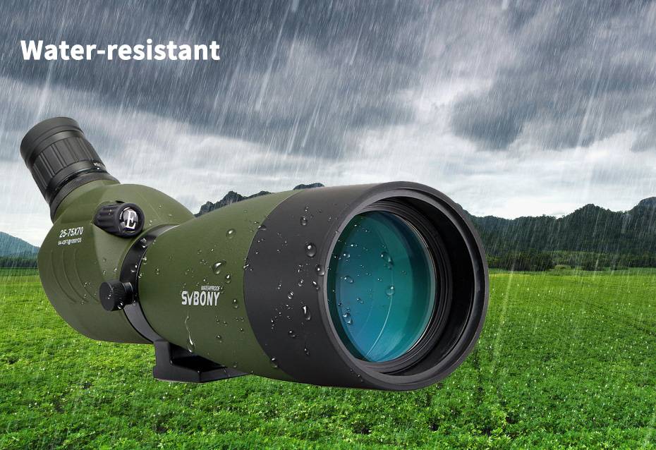 Вместе с этим, зрительная труба SVBONY 25-75x70 имеет достаточно легкий вес и компактный размер, что делает ее идеальным выбором для путешествия или поездки на природу. Обрезиненное всепогодное покрытие обеспечивает надежное удерживание зрительной трубы и защищает от легких ударов. Veber 25-75x70 можно использовать в туман, дождь или снег, корпус заполнен азотом и полностью защищает оптику, как от пыли и влаги, так и от внутреннего запотевания, изображение останется четким и резким.