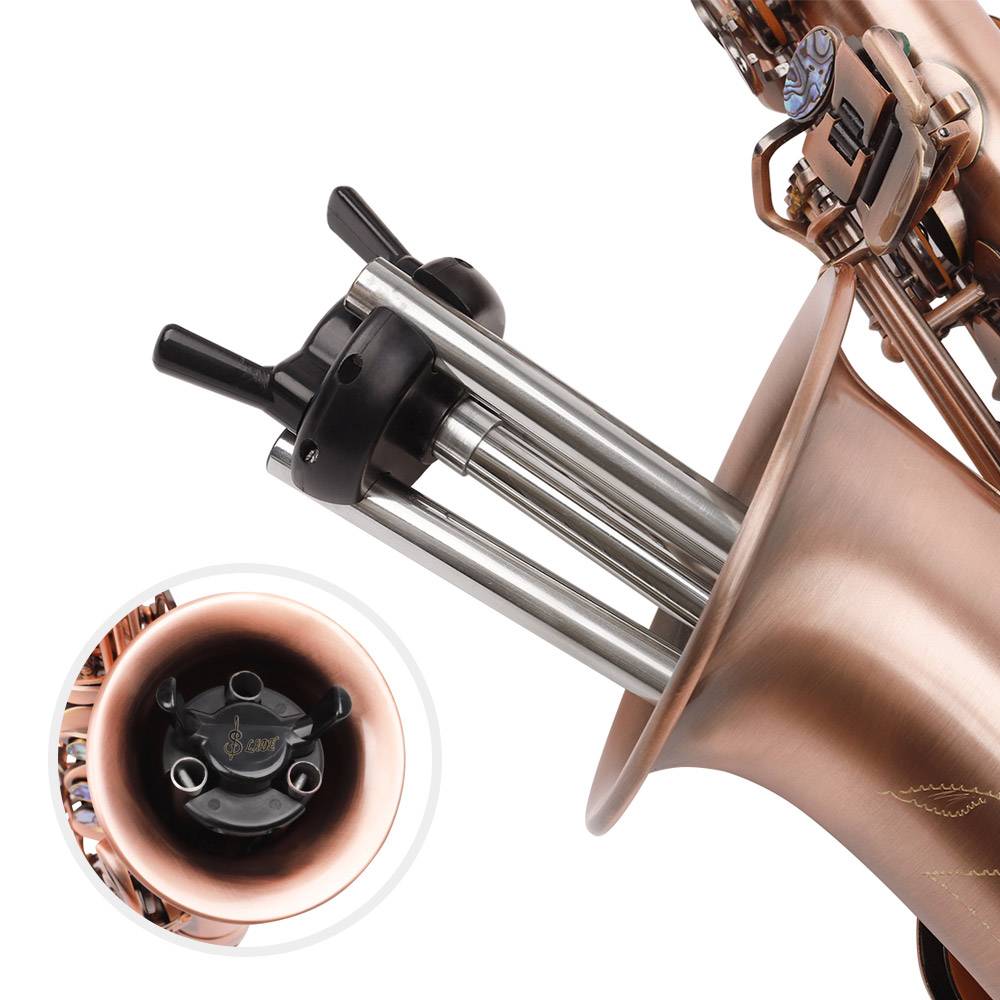 Латунный корпус саксофона с бронзовой поверхностью в винтажном стиле вырезан вручную с тонким мастерством и изысканным рисунком без каких-либо дефектов.