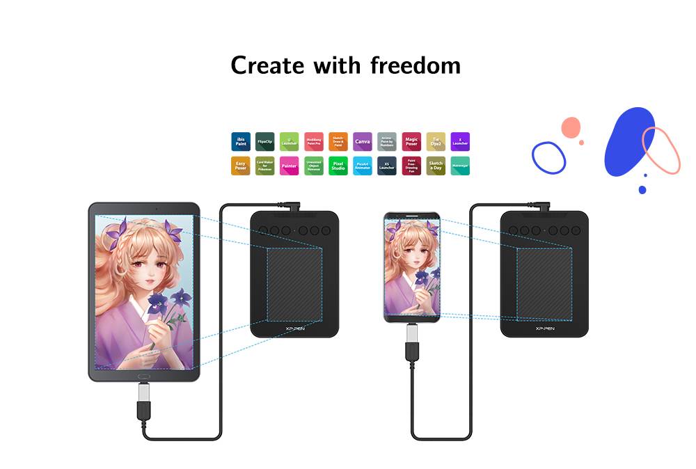 XP-Pen Deco mini4 совместим с ОС Windows 7 (или новее), Linux, Mac OS X® 10.10 (и выше), Android 6.0 (и выше), Chrome OS 88.0.4324.109. Планшет также работает с основным программным обеспечением, включая Photoshop®, SAI®, Painter®, Illustrator®, Clip Studio®, GIMP®, Medibang®, Krita®, Fire Alpaca® и Blender® 3D.
