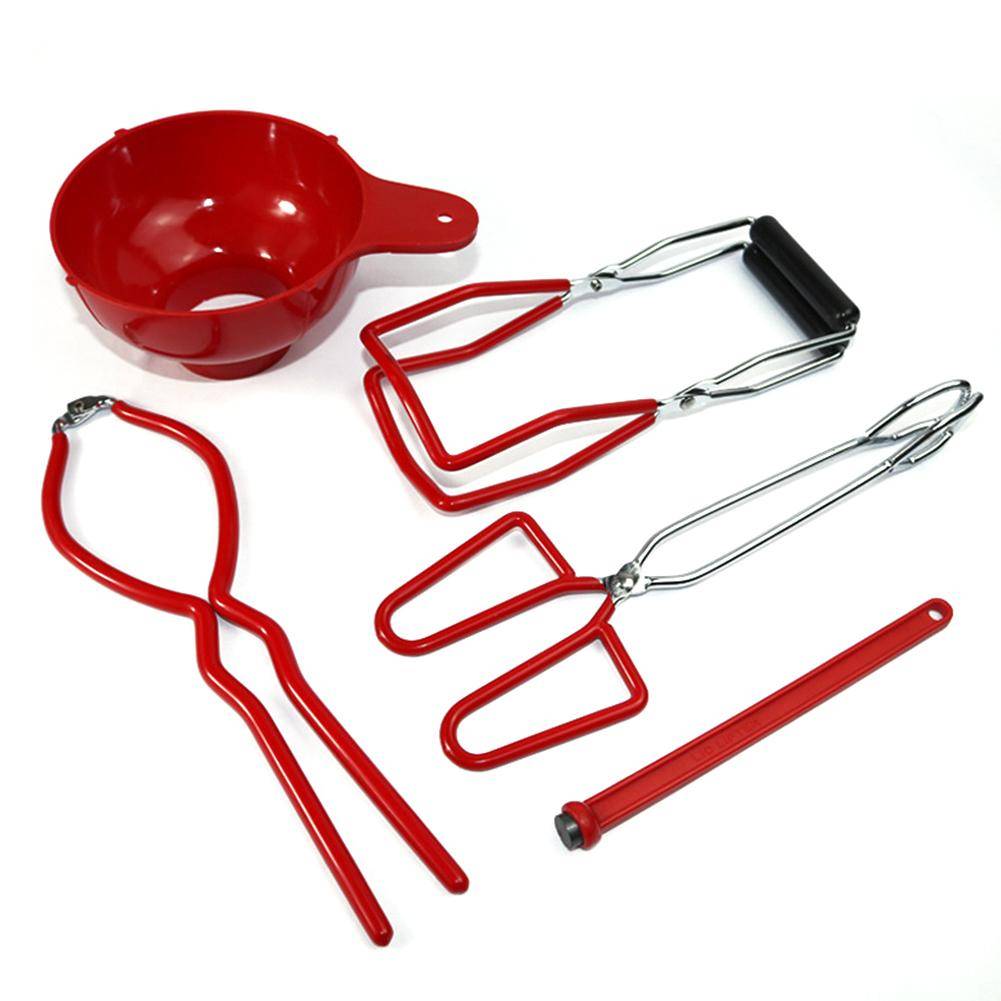 5. Разнообразный инструмент: Набор для консервирования с 5 необходимыми инструментами для консервирования и обезвоживания, включая воронку, подъемник крышек, подъемник банок, гаечный ключ, плоскогубцы.