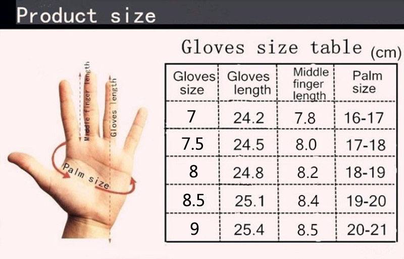 Этот стиль требует большего размера из-за толстой подкладки. Покупатели просят использовать мягкую линейку для измерения окружности ладоней и выбрать размер, который подходит им в соответствии с размером таблицы сравнения.