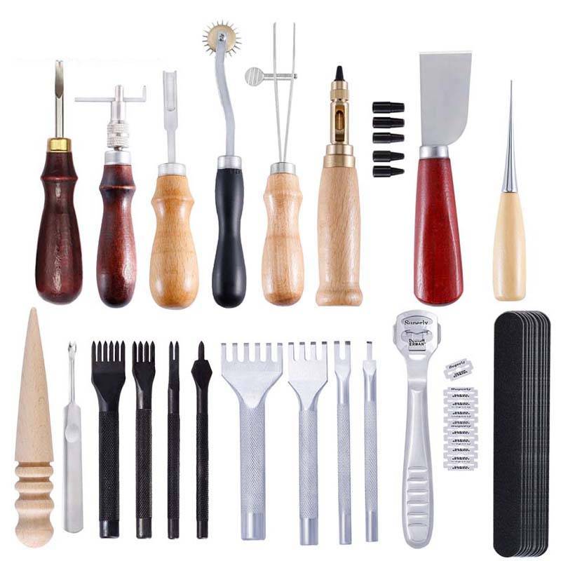Название: Набор для ремонта кожи Материал: нержавеющая сталь + дерево + вощеная нить Тема: кожаный ручной набор для шитья Использование: для начинающих Кожа ремесло Шитье Тип: Кожаный швейный пробойник набор инструментов Особенности 1: Ручное шитье, шитье, штамповка Особенности 2: кожаные аксессуары Особенности 3: Кожаный Ручной Набор для вышивания Feature4: инструменты для восковых нитей