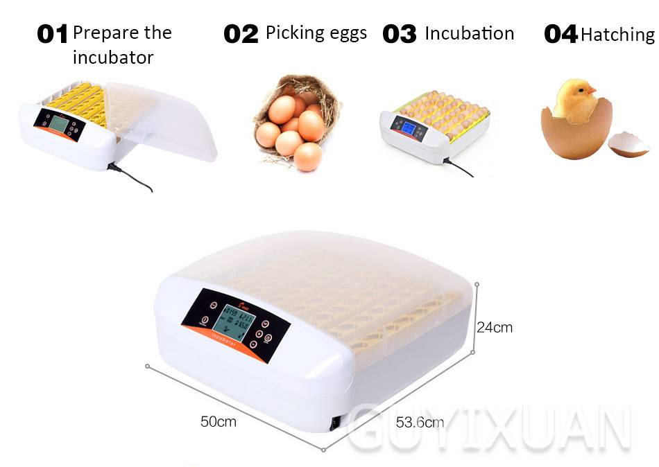 Модель: YZ-56S Объем продукта: 55,0*25,0*51,0 см Вес: 4,7 кг Диапазон контроля температуры: 37,6-38,4 °C Использование: инкубационное оборудование Применимые предметы: курица, Ослик, голубь, утка. Примечание: Из-за различных производственных партий, панель управления этого продукта будет немного отличаться и функционирует одинаково. Если у вас есть какие-либо вопросы, пожалуйста, свяжитесь со службой поддержки клиентов.