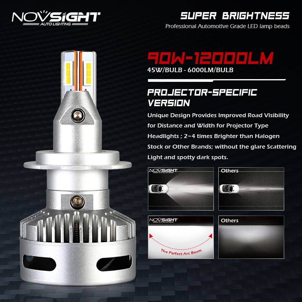 NOVSIGHT H7 светодиодный H7 H11 H8 светодиодный лампы для автомобилей проекционные лампы на заказ Авто класс светодиодный чипы 9005 9006 9012 D1 D2 D3 D4 D5 D8 90 Вт 10000LM Автомобильные фары Противотуманные фары Luces светодиодный Para Автомобильные фары