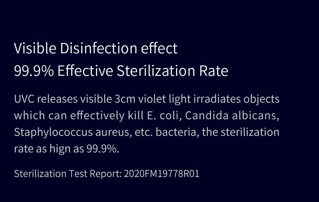 3. Нажмите и удерживайте кнопку питания в течение 2-3 секунды, Белый индикатор светильник будет светильник и UVC лампа шарик будет светильник, и вы можете начать пользоваться им нормально
