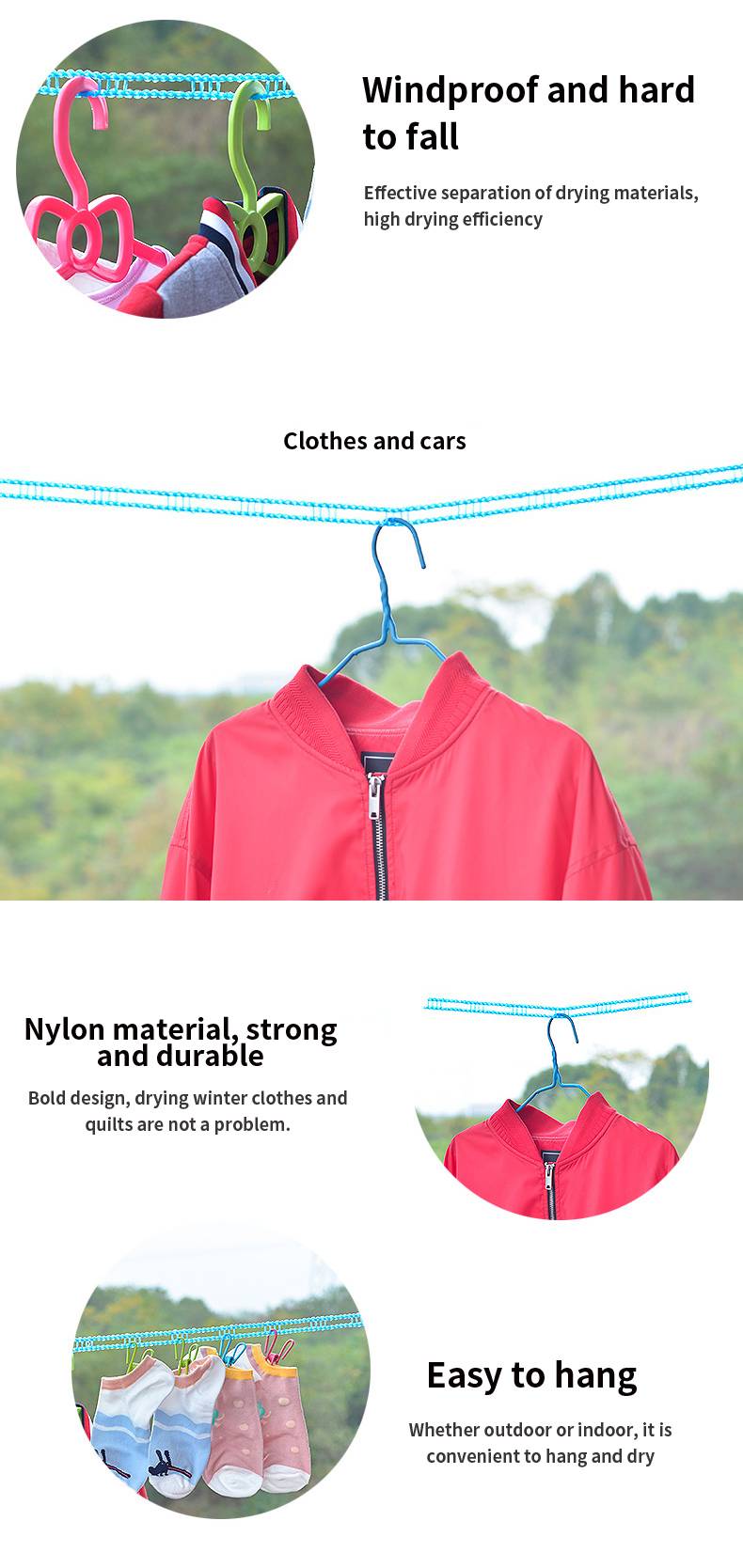 Особенности: Новинка и высокое качество Это хороший инструмент для сухая мойка. Вы можете выбрать 2 размера (3 м или 5 м). Ветрозащитный крючок позволяет избежать сдувания вешалки. Материал: нейлон Размер: 3 м, 5 м, 8 м, 10 м Цвет: отправка случайным образом Посылка включает в себя: 1 x линия одежды