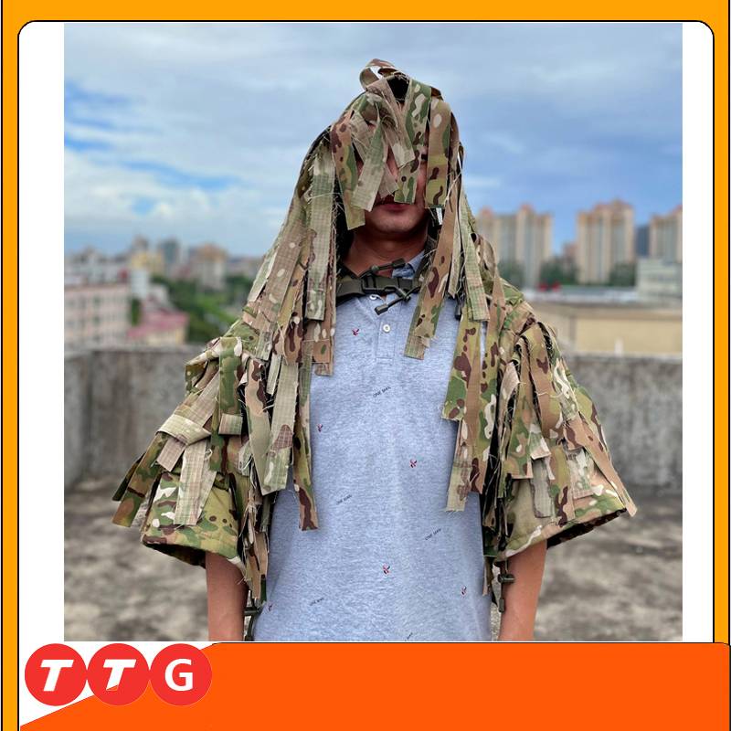 3D костюм Ghillie, дышащий костюм Sniper Ghillie с полосками, охотничий Камуфляжный костюм Sniper Top Ghillie