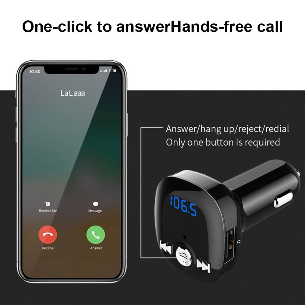 Портативный автомобильный FM-передатчик с двумя USB-портами и Bluetooth 5,0