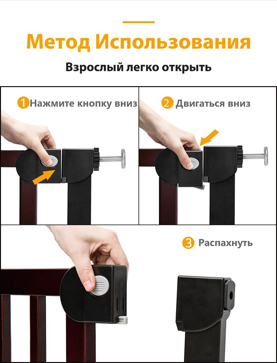 ①Press вниз Кнопка ②Move вниз ③Swing открыть
