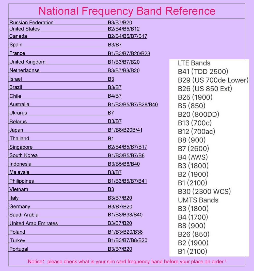 Этот маршрутизатор отключен. Но разные операторы имеют разные Частотные диапазоны в разных странах. Пожалуйста, проверьте Частотные полосы в вашей стране перед заказом, если вы все еще не знаете, чтобы выбрать, пожалуйста, свяжитесь с нами для помощи перед размещением заказа.