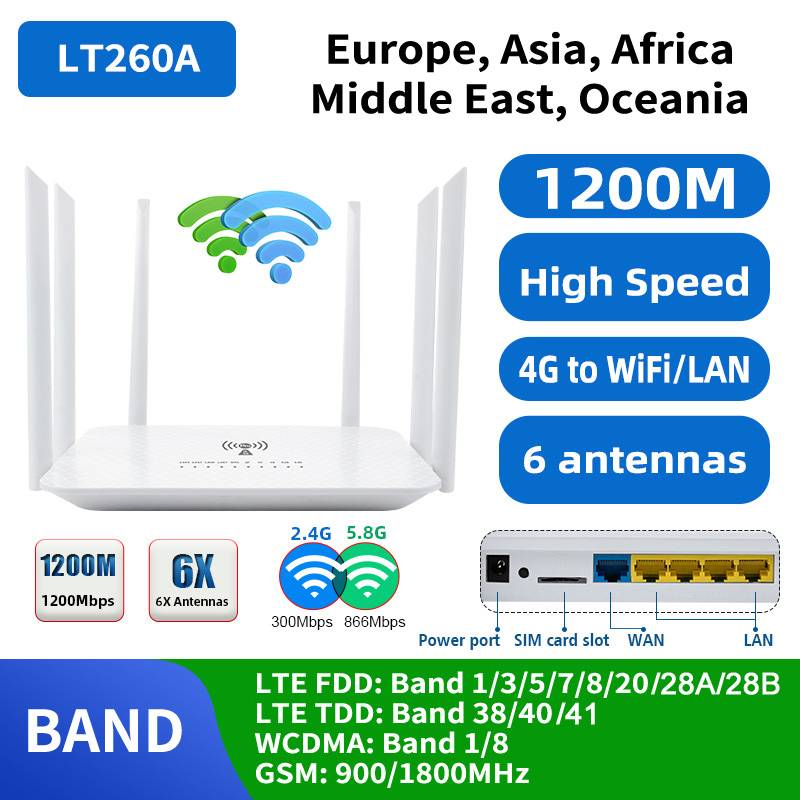 LT260A двухдиапазонный 2,4G и 5,8 Ghz 1200Mbps CAT6 VPN модем 4G Wifi роутер со слотом для sim-карты