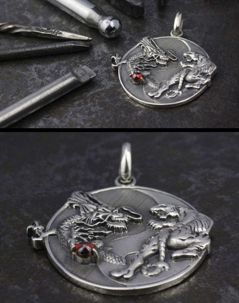 Тайский Серебряный Дракон Тигр кулон