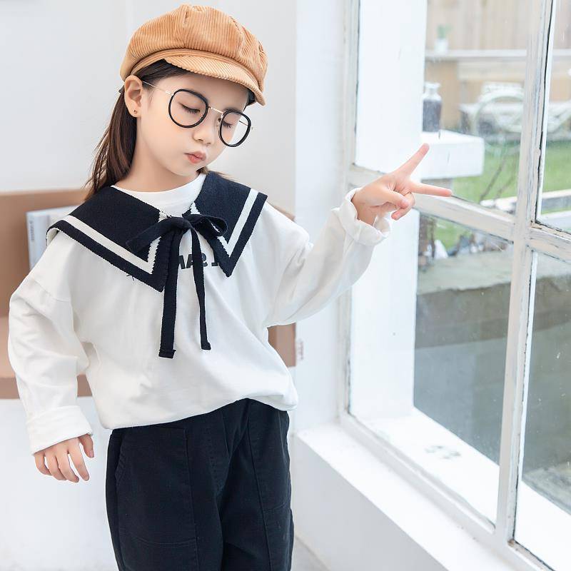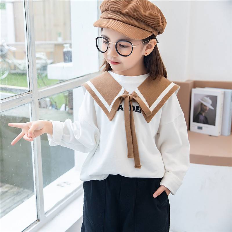 INS стиль, темно-синяя полосатая детская вязаная шаль, искусственный воротник, украшение для маленьких девочек, теплый шерстяной платок, Детские модные аксессуары