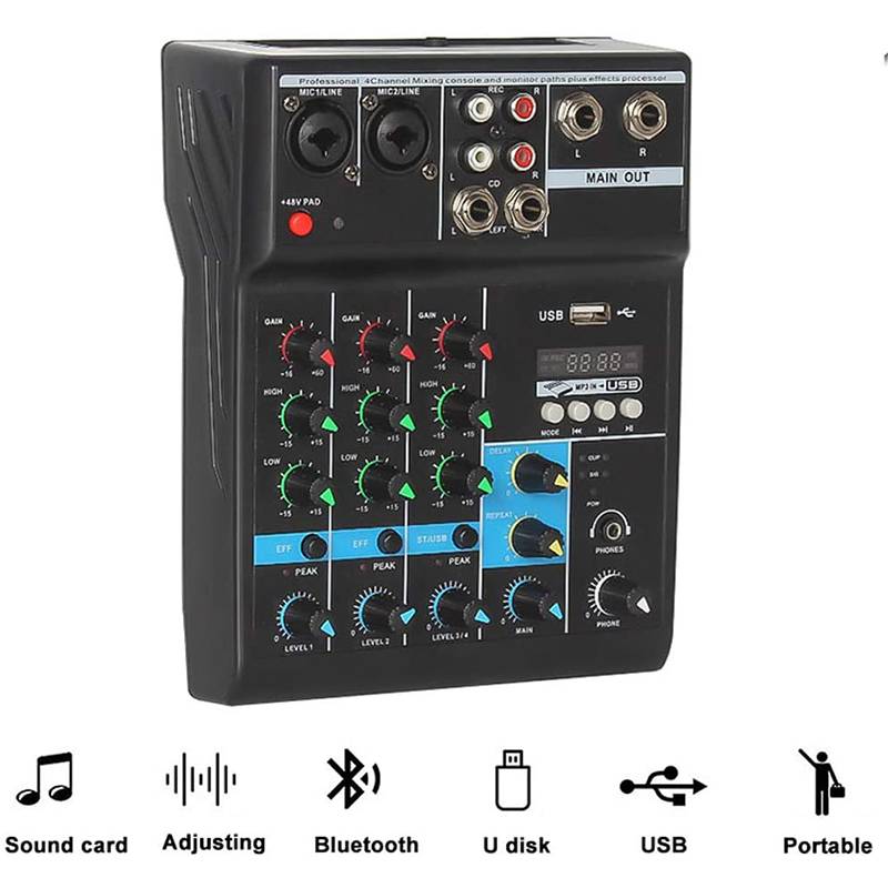 Профессиональный 4-канальный звуковой микшер с Bluetooth, микшерная консоль, звуковой интерфейс, USB Звуковая карта для компьютера, Домашнего Караоке