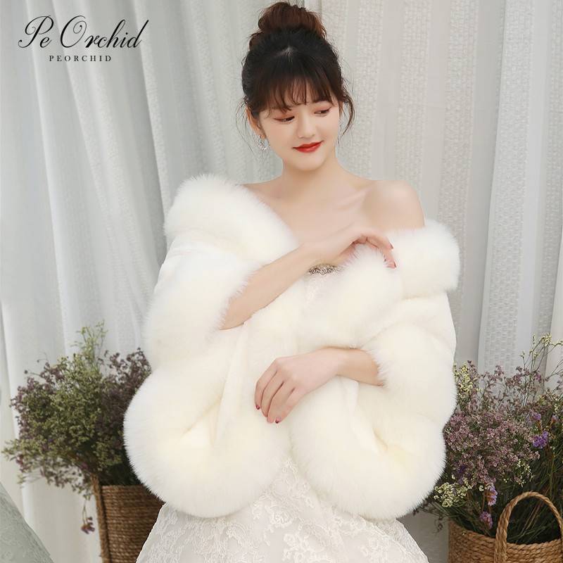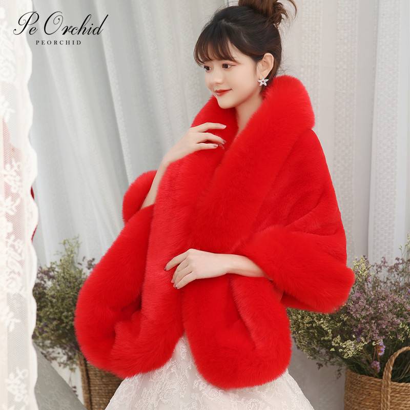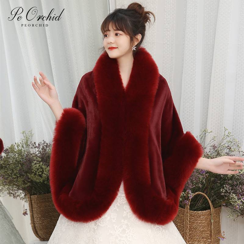 PEORCHID бургундское Болеро Novia свадебное пальто из искусственного меха зимняя женская шаль куртки для вечеринок накидка вечернее Болеро Свадебная накидка