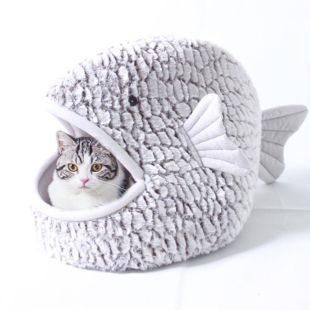 Кошачья кровать в форме рыбы, гнездо, Теплый Котенок, собака, спальные кровати, питомник, мягкий диван для домашних животных, гнезда для маленьких собак, кошек с толстой подушкой, коврик