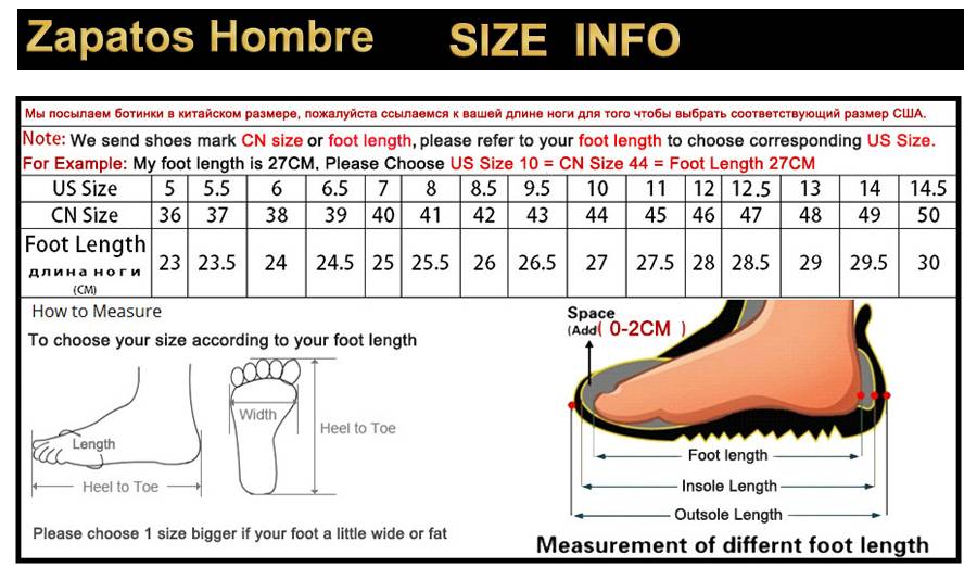 Например: если вы измеряете каблук до носка 27 см, пожалуйста, выберите размер 44 = американский размер 10