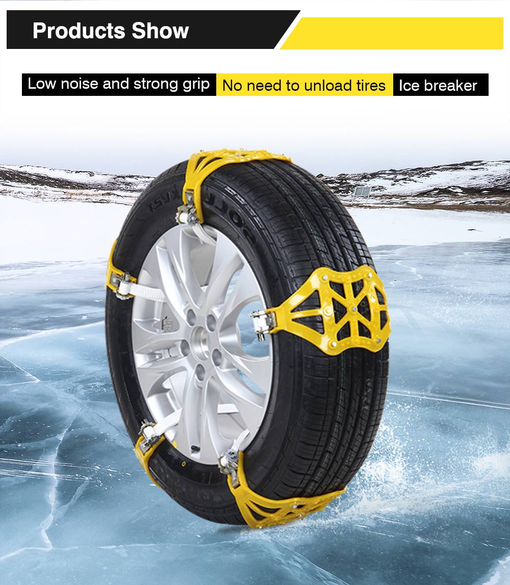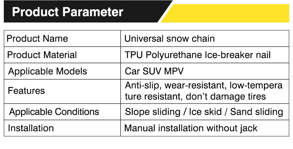 Вы покупаете прозрачную желтую снежную цепочку с универсальными размерами, подходящими практически для автомобилей.