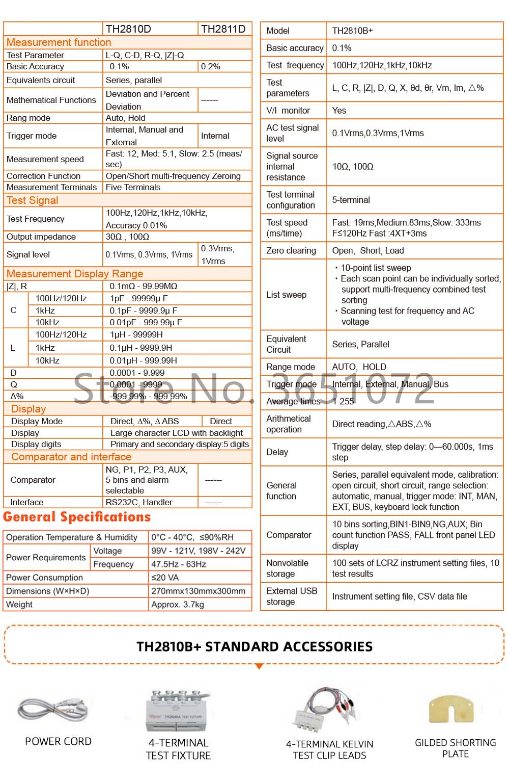Особенности▪ 100 Гц, 120 Гц, 1 кГц, 10 кГц 4 типичных тестовых частоты■ 4,3 дюймов TFT жидкокристаллический дисплей, на китайском и английском языкахДополнительный операционный интерфейс■ 6-значный цифровой чтения разрешение■ Максимальная скорость испытания: 12,5 ms, Поддержка низкой частоты и высоком каблукеСкорость: TX4 + 3 мс▪ Сортировка 10 ящиков, сортировка теста более идеальна▪ 100 наборов файлов для установки инструмента LCRZ, 10 измерений▪ Мягкий выключатель питания■ Поддержка 110V/220V два источника питания напряжения■ 10-список точек развертки, поддержка алгоритм многочастотного тест сортировки▪ Ультра-низкий источник выходного сигнала Смещение (<100 мкВ), удовлетворениеПотребности большого индуктора, общий режим Дроссельный индуктор тест▪ Защита от супер ударов▪ Кнопка блокировки питания на состоянии;■ Пустой приспособление решенияФункция записи данныхФункция захвата экрана▪ Функция интерфейса, время, Задержка запуска и т. д. более полны. Применение■ Пассивные компоненты: Оценка параметров сопротивления для конденсаторов, индукторов,Сердечники, резисторы, пьезоэлектрические устройства, трансформаторы, чипКомпоненты и сетевые компоненты■ Другое компоненты:Оценка сопротивления печатных плат, реле, выключателей, кабелей, батарей и т. д.