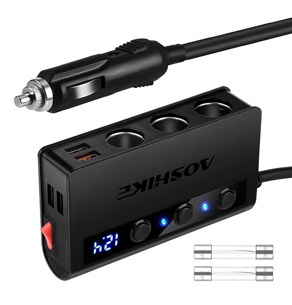 ✔【Higher Power】Equipped с 4-портовый USB розетки и 3 отверстия гнездо для автомобильного прикуривателя, которые обеспечивают 180 Вт Выходная мощность в общей сложности. Достаточно для одновременного использования различных портативных приборов, подходит с Dash Cam, GPS, очиститель воздуха, радар-детектор, Sat Nav, подогреватель сиденья, увлажнитель автомобиля, автомобильный вентилятор, iPhone, iPad, планшет и т. д.