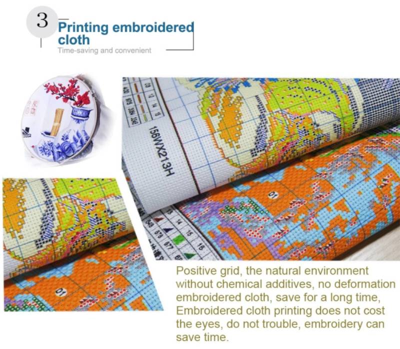 "Печатный узор"-это напечатанный холст. Рисунок был предварительно напечатан на холсте, чтобы помочь определить различные цветовые нити, его можно стирать после завершения всей картины. Это делает крестиком намного проще и быстрее.