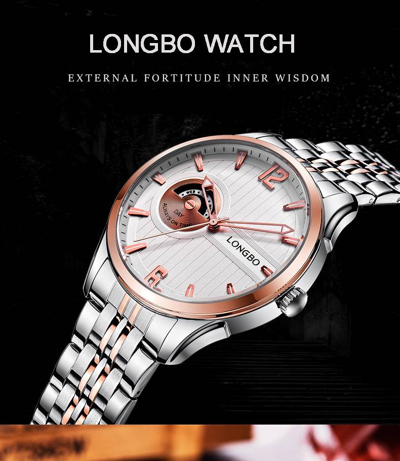 Мужские часы LONGBO, брендовые Роскошные Кварцевые наручные часы из нержавеющей стали, водонепроницаемые часы