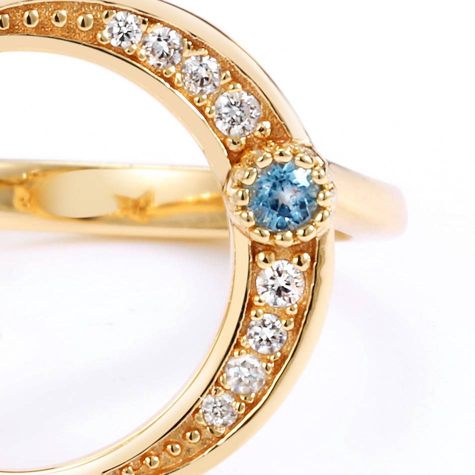 ALLNOEL изысканное золото S925 Стерлинговое Серебро Кольца для женщин Луна и звезда голубой топаз открытый манжет кольцо 2020 Новый дизайн Оптовая торговля