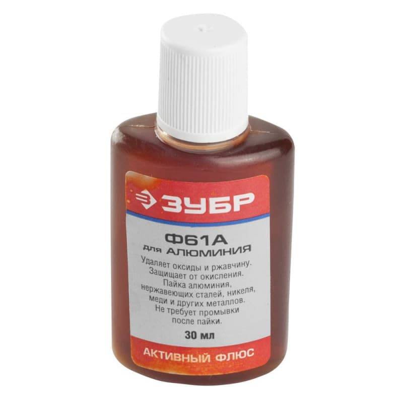 Флюс Ф61А Зубр 55493-030 применяется для удаления оксидов с поверхности под пайку. Требует отмывки смоченной в спирте салфеткой.