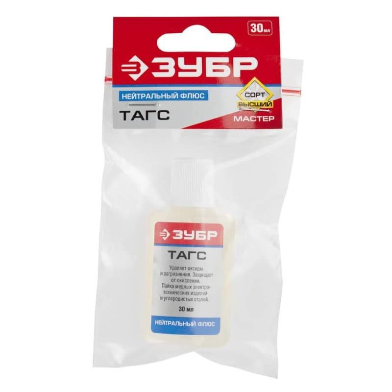 Флюс ТАГС Зубр 55479-030 применяется для пайки элементов радиомонтажа и печатных плат легкоплавкими припоями. При пайке печатных плат имеет остаточное сопротивление и требует промывки водой или спиртом.