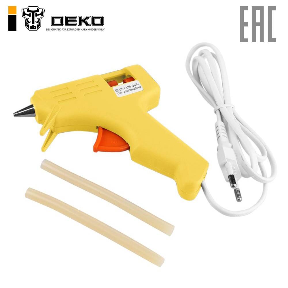 Пистолет клеевой DEKO DKGG30 – незаменимый инструмент для всех, кто делает мелкий ремонт дома или занимается декоративно-прикладным искусством. Пистолет быстро нагревает клей, который способен склеить практически любой предмет, его можно использовать с любым материалом, включая дерево, ткань, камень, стекло, металл, пластик и пену.