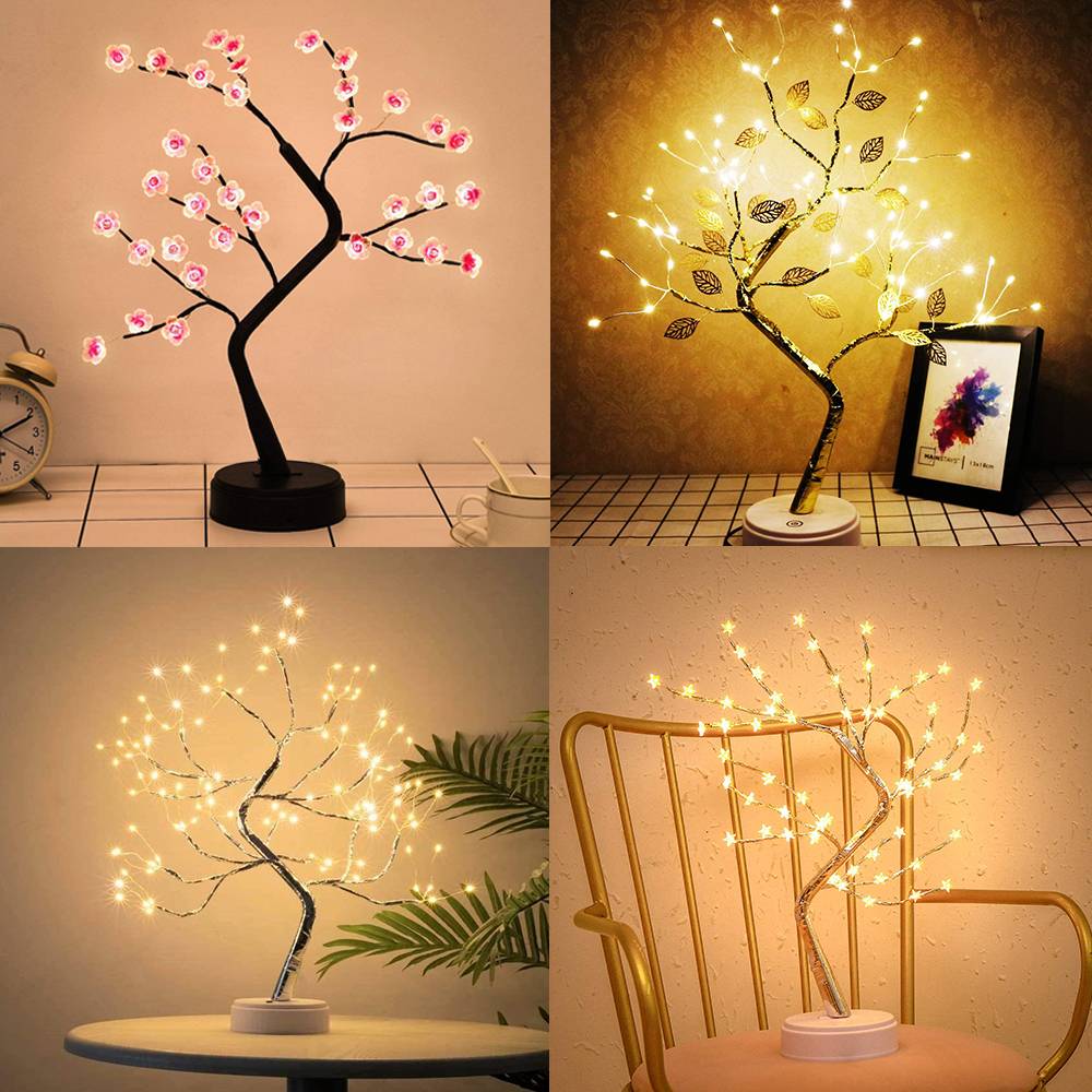 【Уникальный дизайн дерева 】: дизайн в стиле бонсай, естественная форма дерева добавит жизненной силы вашему дому. 5 видов деревьев на ваш выбор, это осветительное дерево из медной проволоки 108 светодиодов, дерево с золотыми листьями 72 светодиода, звездное дерево 60 светодиодов, дерево из искусственного жемчуга 36 светодиодов и дерево цветения вишни 35 светодиодов. Загорается теплым белым/разноцветным светодиодным светом, идеально светится, создавая спокойствие и теплую атмосферу в вашей комнате.