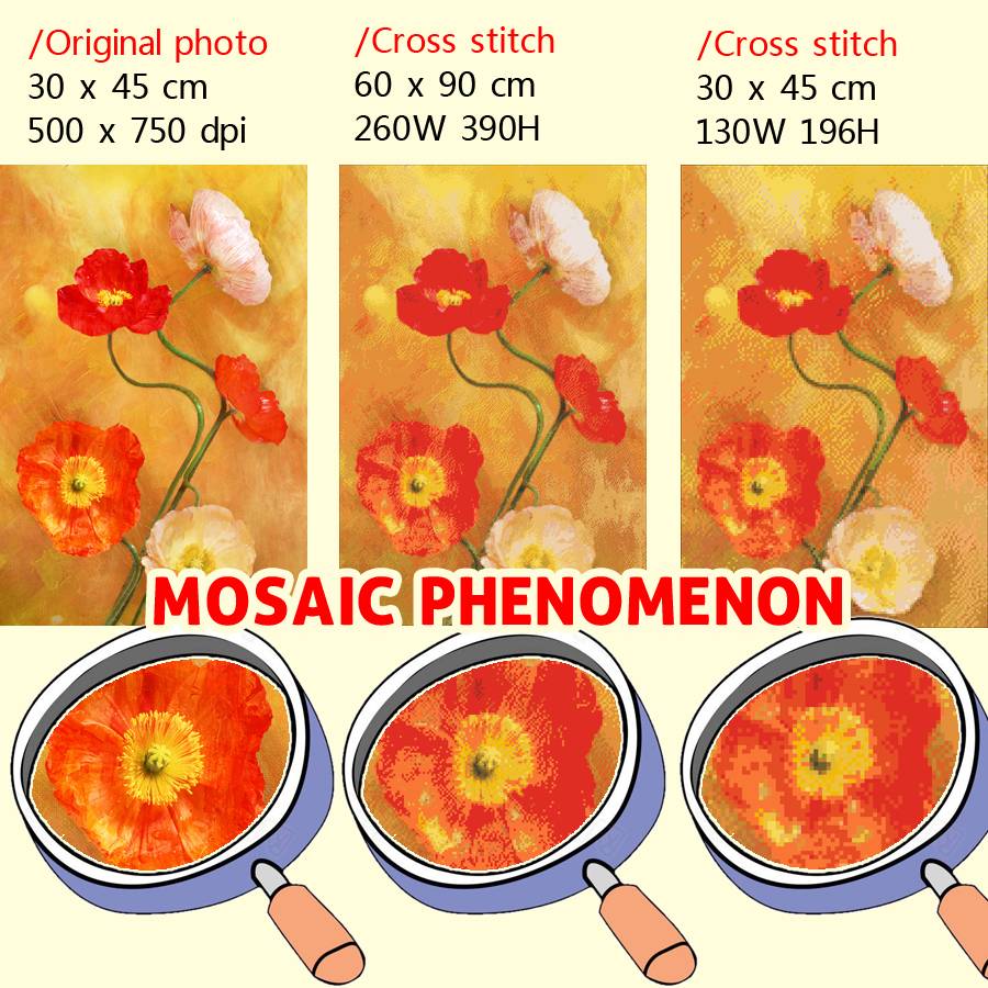 Поскольку количество цветов вышивки крестиком обычно составляет 30 ~ 45, эффект узора после завершения вышивки определенно не такой хороший, как на исходном фото, и иногда рисунок может быть искажен. Это нормально. Однако в целом эффект вышивки крестиком большего размера лучше, чем у узора меньшего размера.