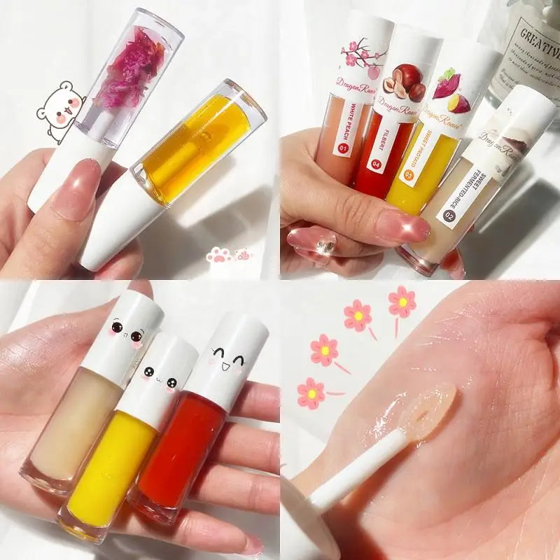 1 шт. прозрачный блеск для губ розовый цветок натуральный растительное масло для губ красный бархат основа для макияжа губ тату длительный фруктовый бальзам для губ TSLM2