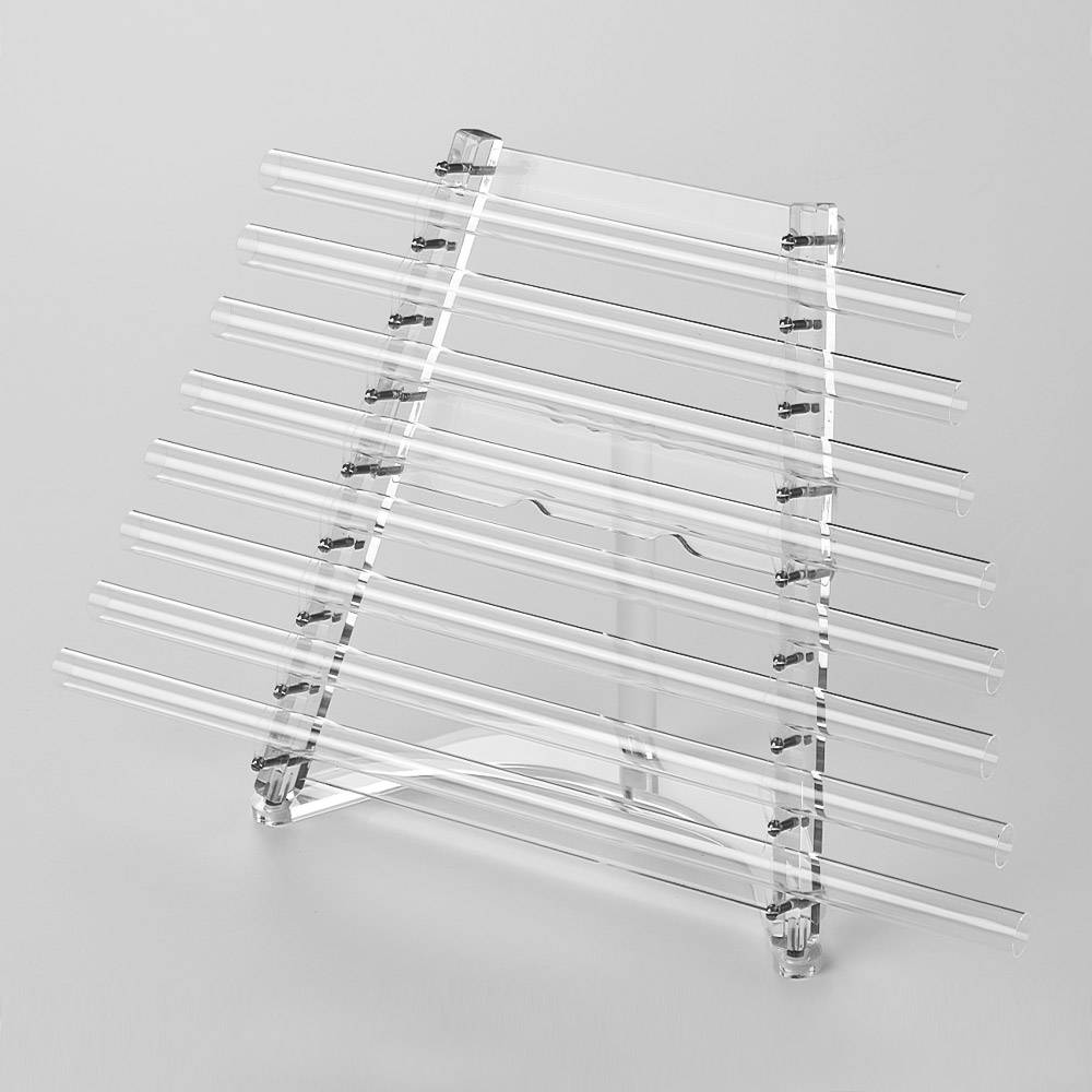 С акриловой основой и подставкой для размещения арфы на рабочем столе или полу для удобной игры.