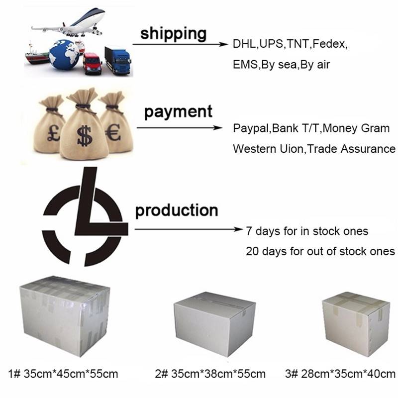 Как правило, наше время производства составляет 15 дней. Мы предлагаем бесплатную доставку для Aliexpress стандартной доставки. Если вам срочно нужно, мы советуем вам выбрать DHL, которая занимает всего 3-7 дней.