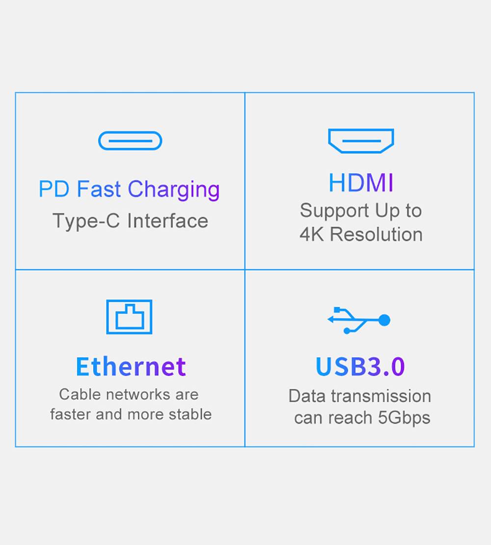 Тип 1:Type-C на HDMI-совместимый/USB3.0/RJ45/Type-C;