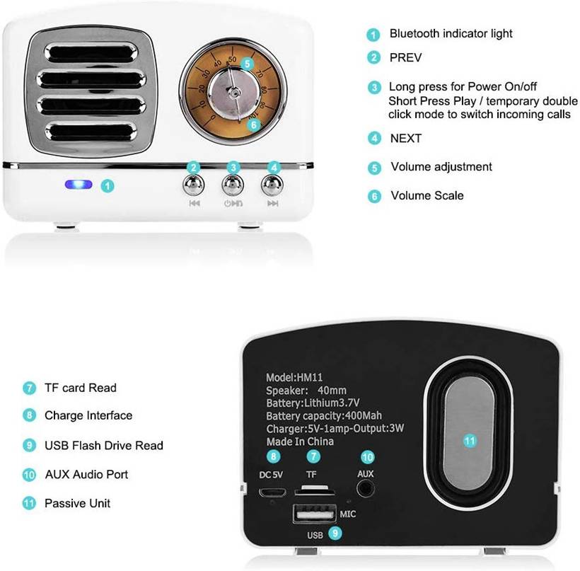 Использование технологии беспроводной передачи по bluetooth, высокая эффективность и стабильность беспроводной передачи и защита от помех, поэтому вы сможете наслаждаться красивой музыкой в любое время. Восстанавливает качество звука Hi-Fi. Маленький корпус, большой объем. Просто нажмите кнопку воспроизведения, старые временные воспоминания нальзуются прекрасной музыкой, так что вы сможете спокойно наслаждаться послеобеденным временем.