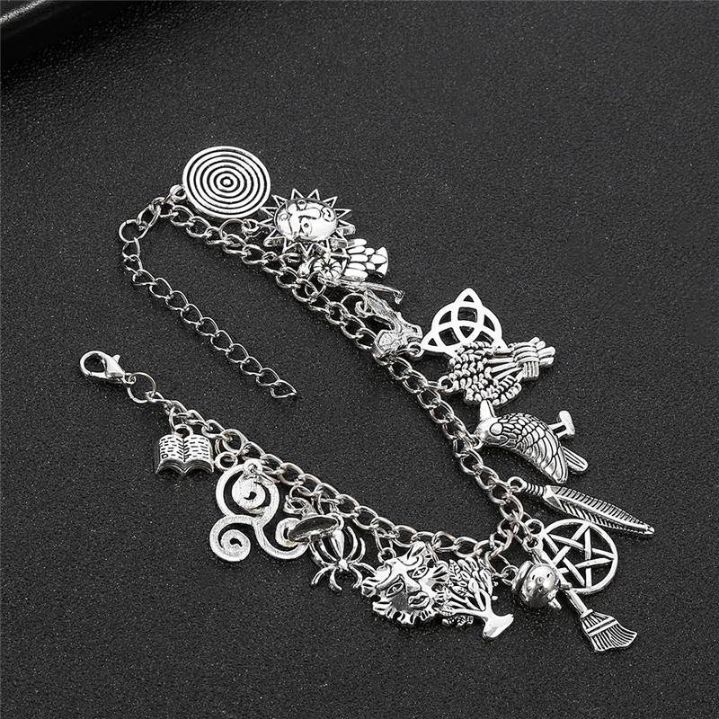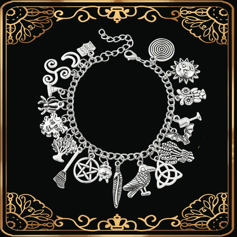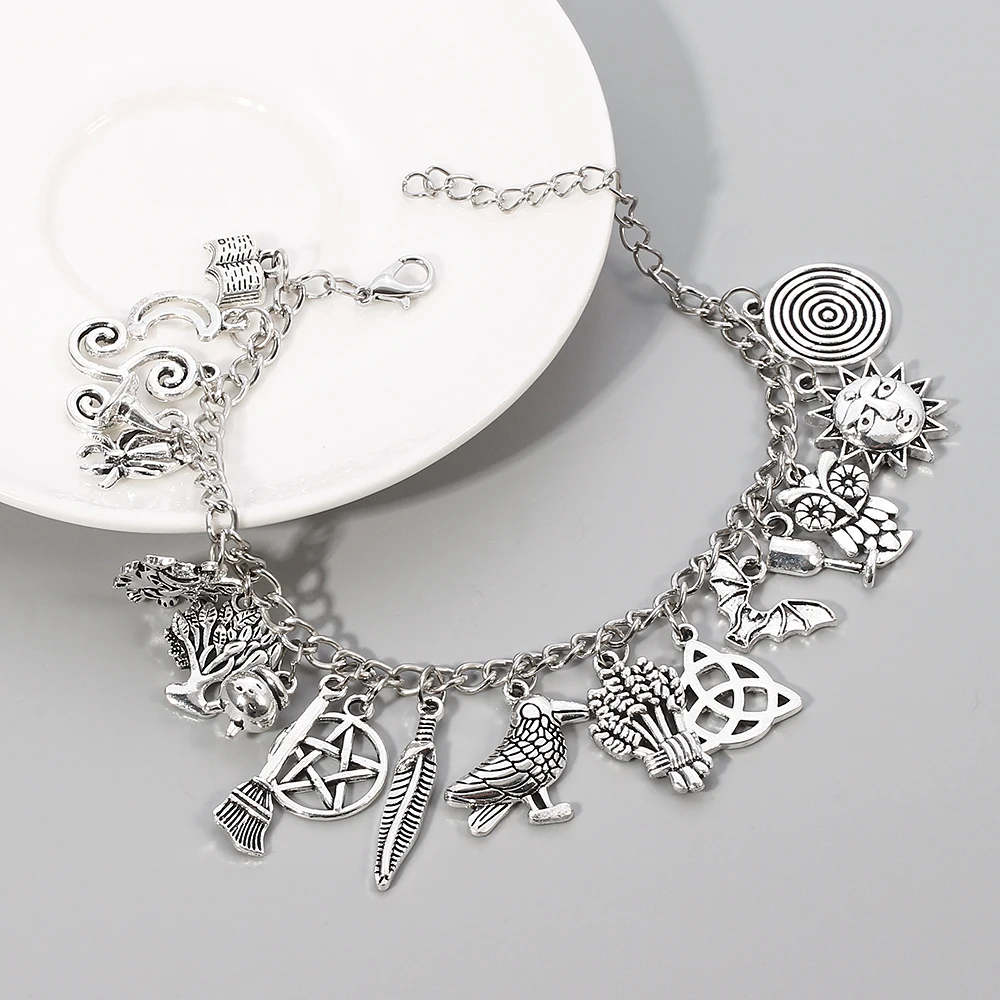 Браслет на Хэллоуин, богатый кулон, звезда, луна, ужас, паук, волшебная метла, панк, очаровательный браслет, Рождественский браслет, Женские Ювелирные изделия