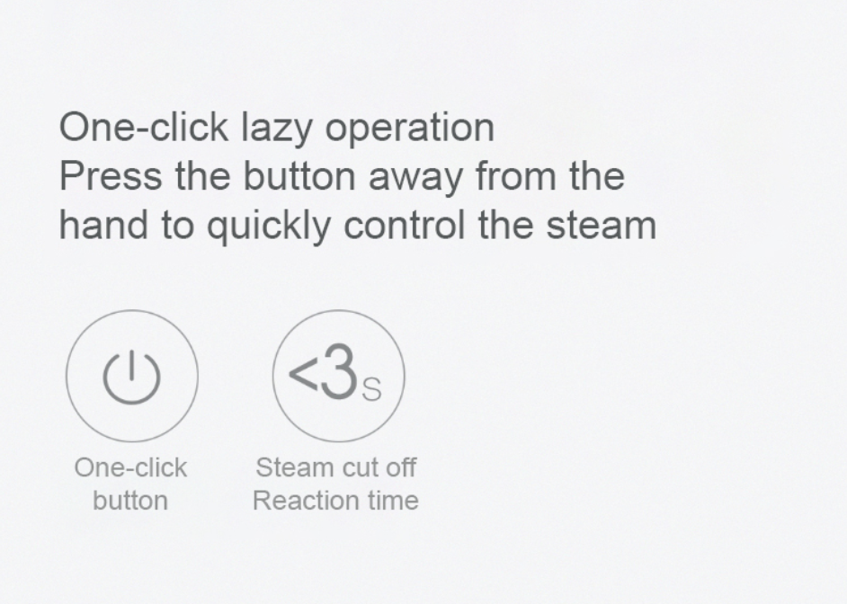 Ленивая работа одним нажатием Нажмите кнопку подальше от рук, чтобы быстро контролировать пар Круглая кнопка пара спроектирована и отрегулирована много раз. Звук кнопки мягкий, и ход кнопки комфортный. После выключения кнопки пар можно быстро остановить в течение 3 секунд, что более удобно для хранения и использования. Управление одним касанием, Даже новички могут легко контролировать, деликатно гладить одной рукой.