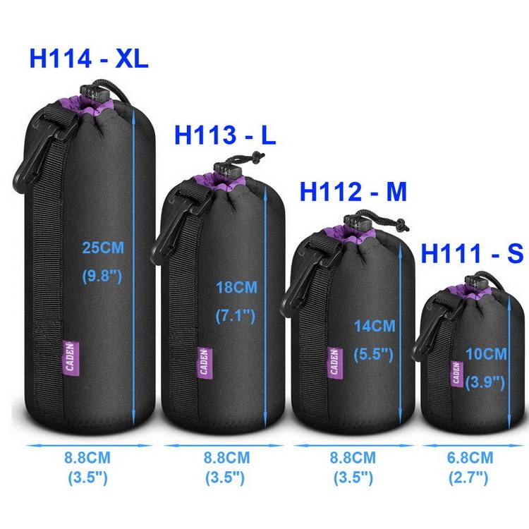 Номер модели: H111 - S, H112 - M, H113 - L, H114 - XL. Цвет: черный и фиолетовый Основной материал: неопрен Комплектапосылка размеров: (1) 1 x сумка для хранения линз: Пожалуйста, выберите один из номеров модели. (2) 2 сумки для хранения линз: по умолчанию посылка будет H111 - S & H112 - M. Если вы не хотите получить сумки по умолчанию, после оплаты, пожалуйста, отправьте нам сообщение и сообщите нам, какие 2 сумки для хранения линз вы хотите получить. Затем мы отправим 2 сумки для хранения линз, которые вы выбрали, без дополнительной оплаты. (3) 3 x сумки для хранения линз: по умолчанию посылка будет H111 - S, H112 - M и H113 - L. Если вы не хотите получать сумки по умолчанию, после оплаты, пожалуйста, отправьте нам сообщение и сообщите нам, какие из 3 сумок для хранения линз вы хотите получить. Тогда мы отправим 3 сумки для хранения линз, которые вы выбрали, без дополнительной оплаты. (4) 4 x сумки для хранения линз: H111 - S, H112 - M, H113 - L и H114 - XL. H111 - S Внешний размер: 6,8x10 см (2,7x3,9 дюйма) Внутренний размер H111 - S: 6,8x8 см (2,7x3,1 дюйма) Емкость H111 - S: 1 объектив камеры H111 - S вес нетто: 0,04 кг H112 - M Внешний размер: 8,8x14 см (3,5x5,5 дюйма) H112 - M Внутренний Размер: 8,8x12 см (3,5x4,7 дюйма) H112 - M Емкость: 1 объектив камеры H112 - M Вес нетто: 0,06 кг H113 - L Внешний размер: 8,8x18 см (3,5x7,1 дюйма) H113 - L внутренний размер: 8,8x16 см (3,5x6,3 дюйма) Емкость H113 - L: 1 объектив камеры H113 - L Вес нетто: 0,06 кг (0.13LB) H114 - XL Внешний размер: 8,8x25 см (3,5x9,8 дюйма) Внутренний размер H114 - XL: 8,8x22,5 см (3,5x8,6 дюйма) Емкость H114 - XL: 1 объектив камеры H114 - XL вес нетто: 0,07 кг