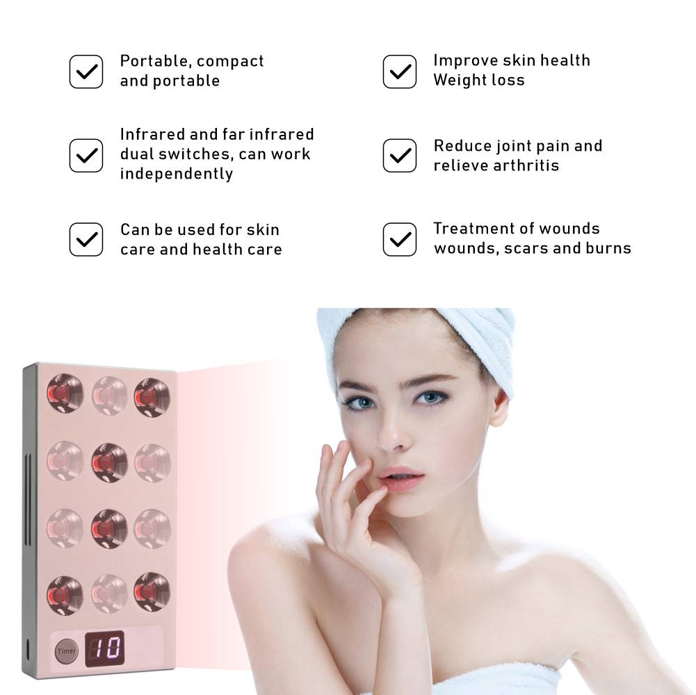 Красный светильник (RLT) предназначен для решения проблем с кожей, используя красный светильник с низкой длиной волны. Многие эксперты считают, что это может помочь Такие проблемы, как состояние кожи, рубцы и признаки старения, включая морщины и возрастные пятна. Так что это может быть для меня здоровье кожи. Красный светильник также имеет следующие преимущества для здоровья: Уменьшает воспаление Потеря Жира улучшает функцию щитовидной железы Уменьшение боли в суставах увеличение восстановления мышц Улучшение качества сна Повышение познания и памяти