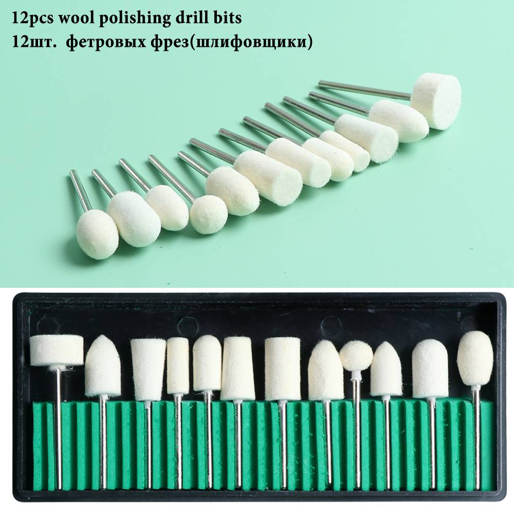 1шт. ручка-фрезер (110V/220V общий) адаптер(стандарт UK/US/EU/AU) 6шт насадки 6шт сменных наждачных наконечников 1x Руководство пользования (на английском языке) 1 Набор фрез корундовых, 12 шт.